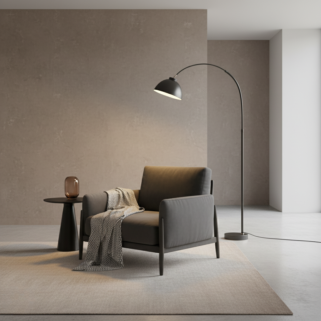 Mira - Modern Arc Floor Lamp in Black Metal with Curved Shade for Living Room