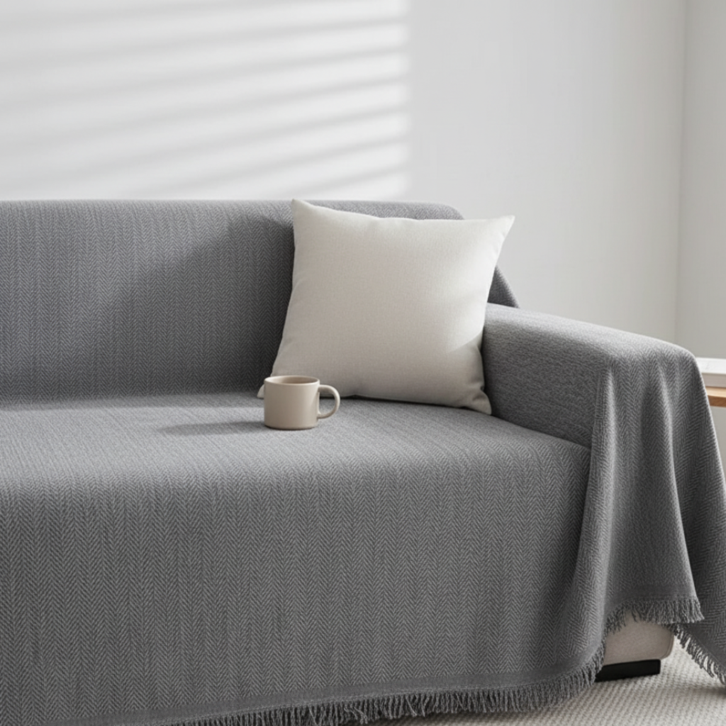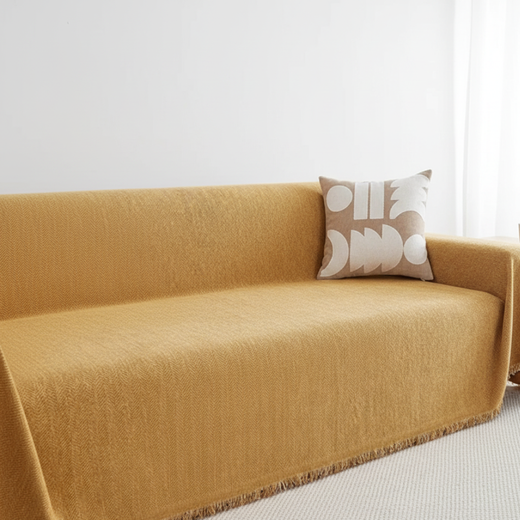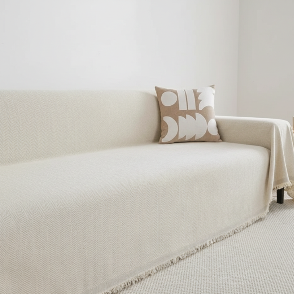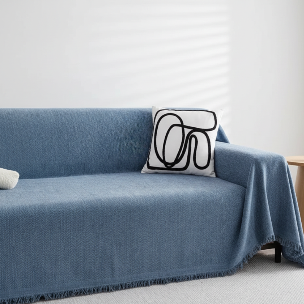 Refresh your space with the sleek and practical Chic Living Minimalist Couch Cover. Designed to protect your furniture while adding a modern touch, this versatile cover is perfect for everyday use. Its durable, pet-friendly design ensures it stays looking fresh, while the subtle tassel detail adds a stylish accent to your living room décor.