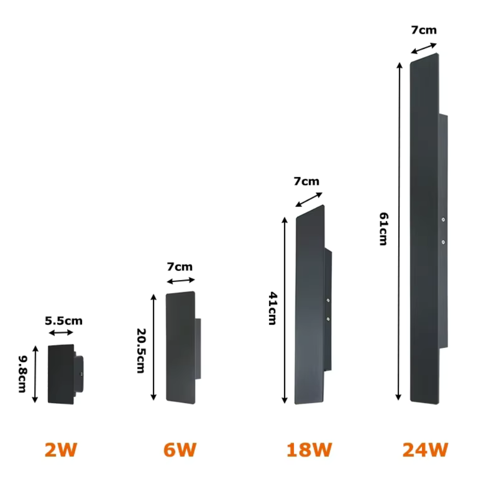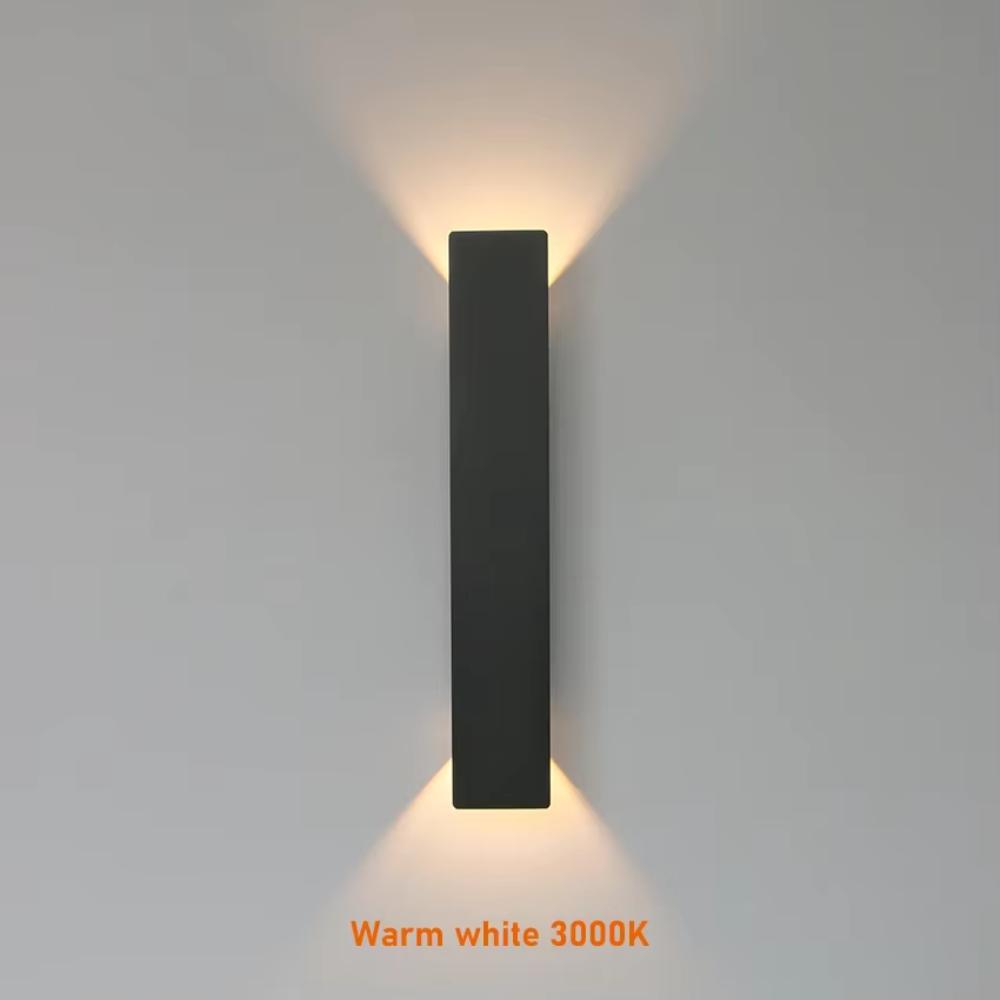 Discover the modern Waterproof LED Strip Wall Lamp, designed to enhance your outdoor areas with a contemporary and elegant touch. Perfect for patios, garden walls, or building facades, this lamp features a sleek, minimalist design and durable construction that seamlessly blends modern refinement with a clean aesthetic. The soft, bi-directional glow emitted by the integrated LED enhances the aluminum structure, creating a warm and inviting ambiance. Whether used as a standalone fixture or grouped in multiples, it serves as an eye-catching centerpiece in your décor.