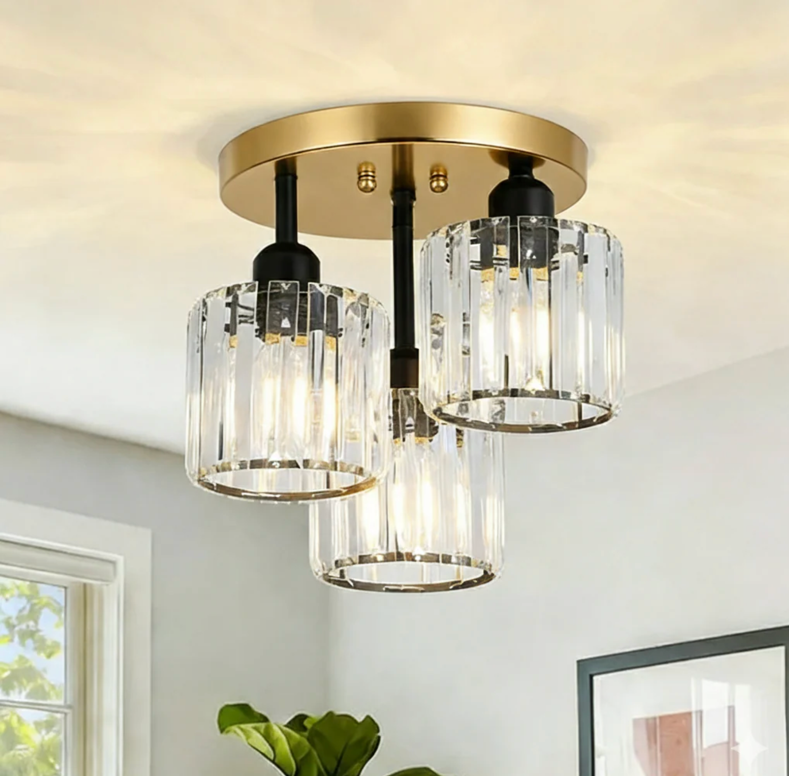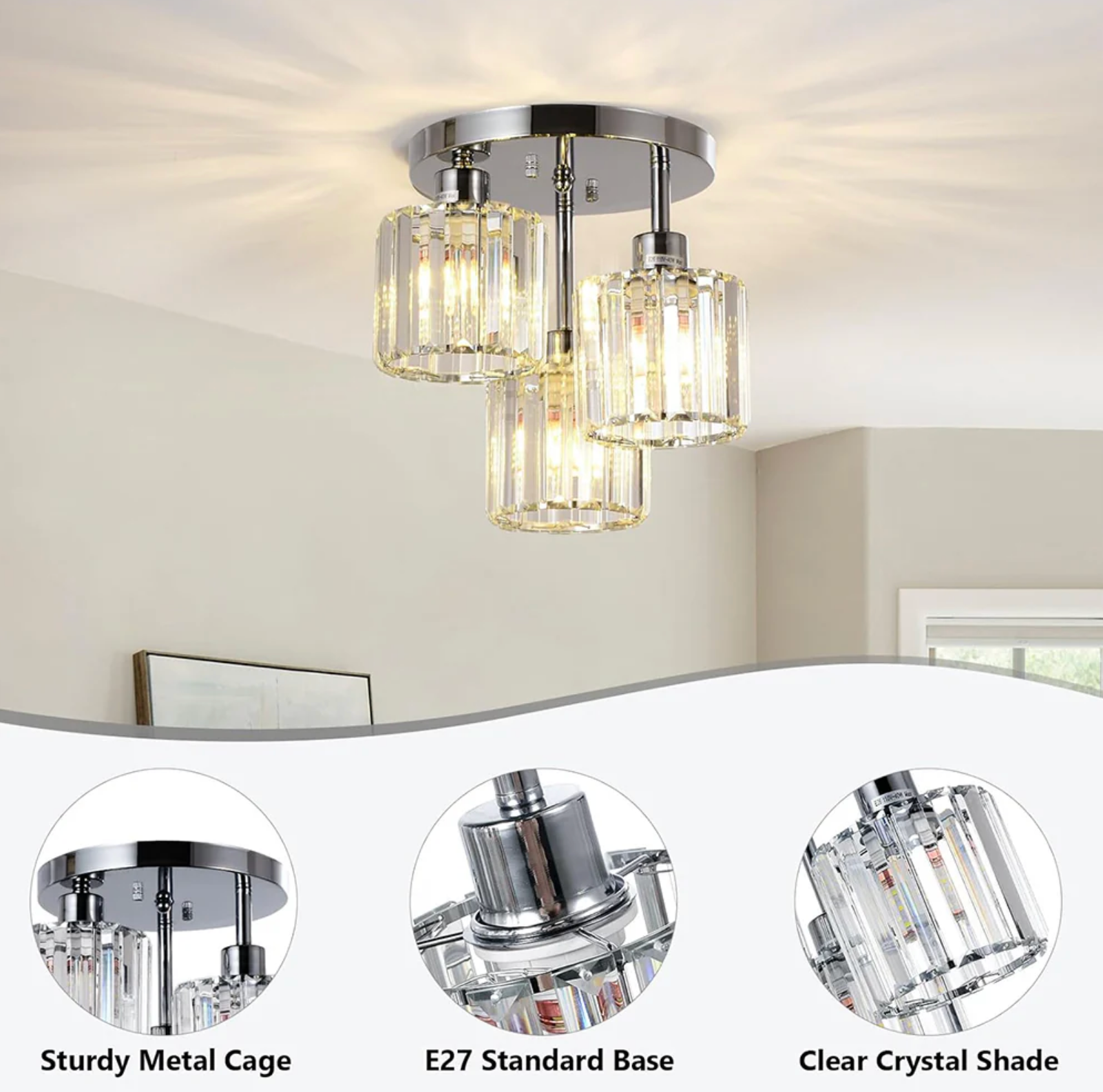 This stunning crystal semi flush ceiling light combines modern design with luxurious elements, making it a perfect addition to your bedroom or any living space. Its sleek silhouette and shimmering crystals create a sophisticated ambiance, enhancing the overall decor while providing ample lighting.