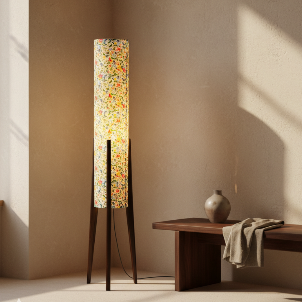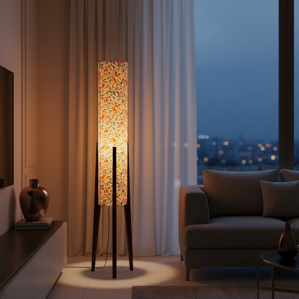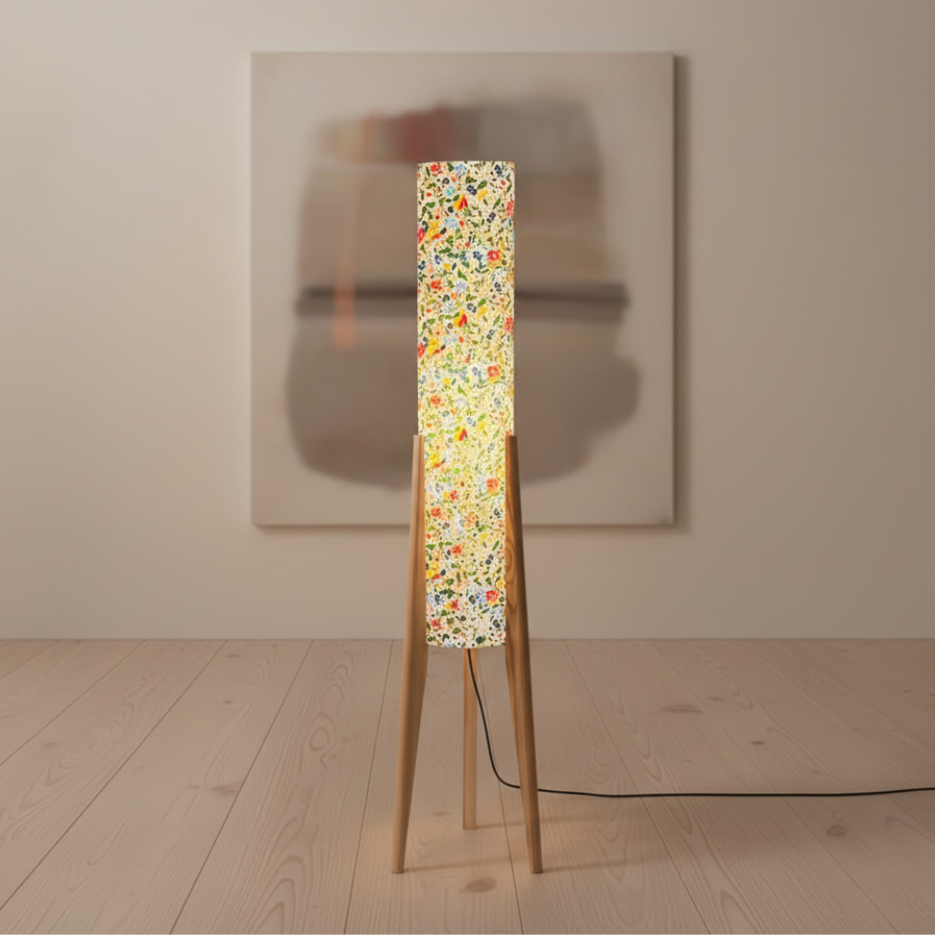 Roya Floral Modern Floor Lamp - Elegant Wooden Tripod Standing Lamp for Living Room
