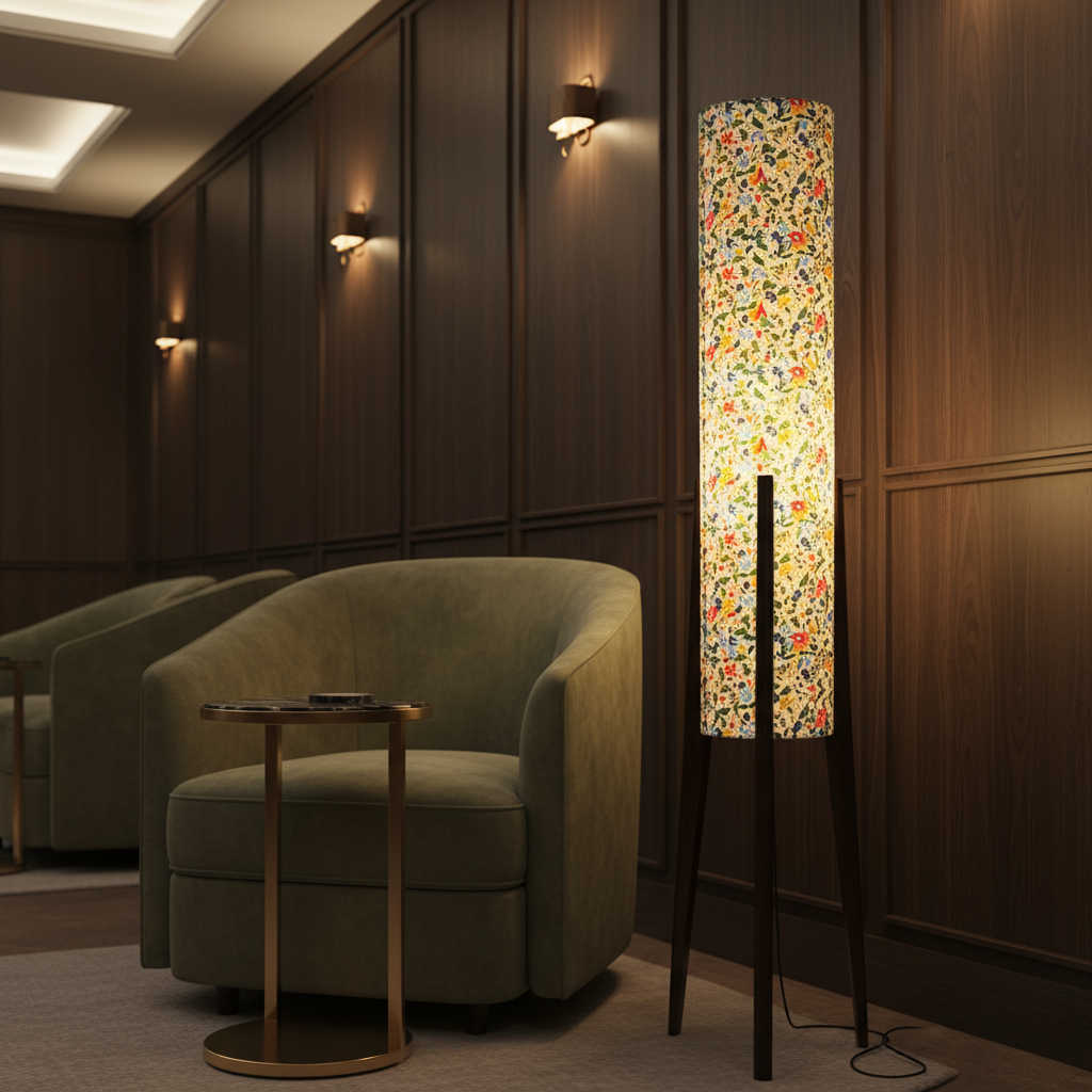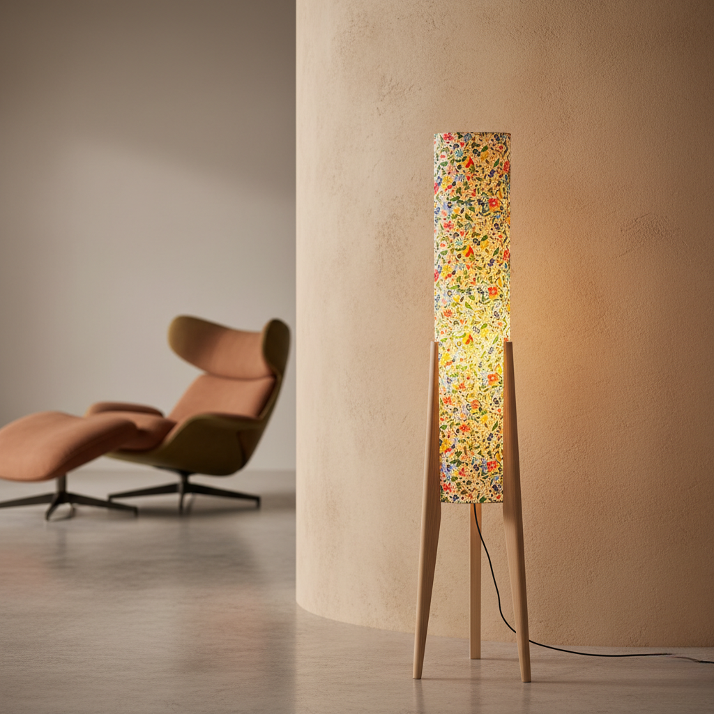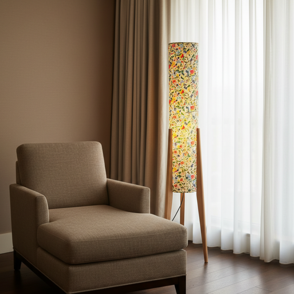 Roya Floral Modern Floor Lamp - Elegant Wooden Tripod Standing Lamp for Living Room