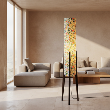 The Roya Floral Floor Lamp by Docos is a stunning addition to any room, combining functionality with artistic design. Its vibrant floral-patterned shade adds a splash of color, while the sturdy wooden tripod base ensures stability and elegance. Standing at a height of 127cm, this lamp serves as a perfect statement piece, providing both illumination and aesthetic appeal.