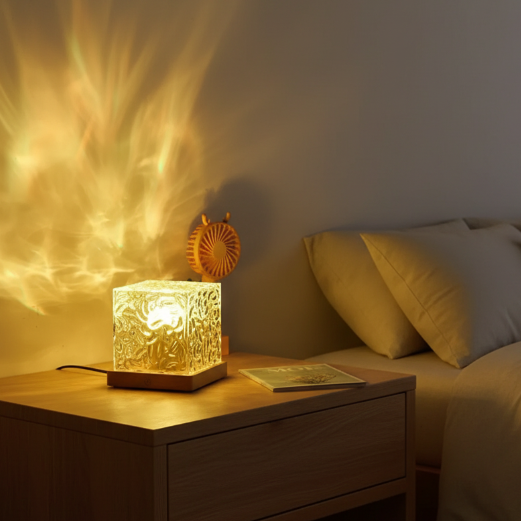 This unique lighting piece mimics the breathtaking beauty of the Aurora Borealis. Designed as a sleek cube, this lamp utilizes a prism pattern to reflect light in a mesmerizing display, reminiscent of the dancing colors of the northern lights. Perfect for any setting, the wooden base and 16 customizable colors enhance the ambiance of your space.