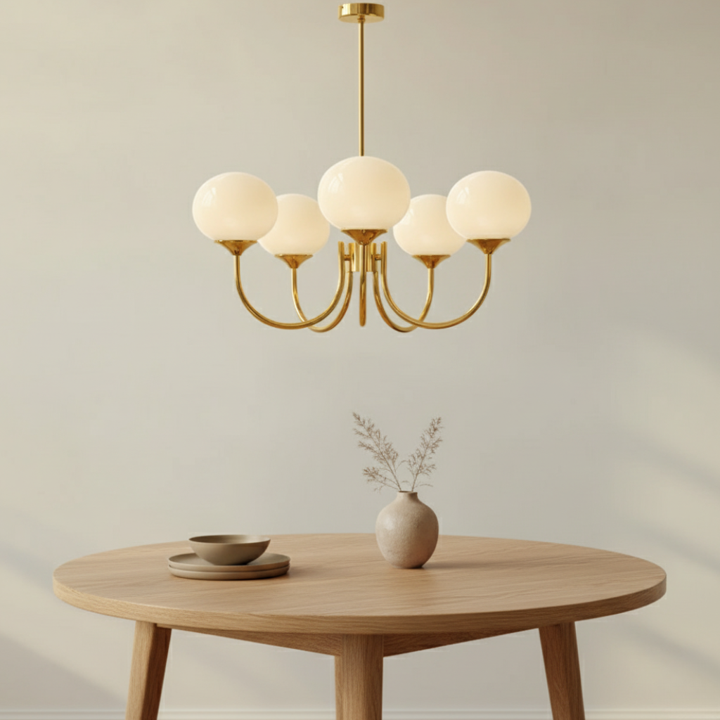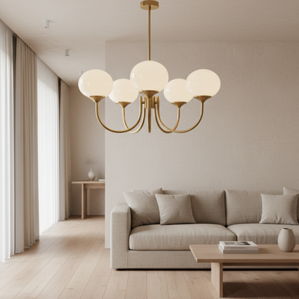 - Refined Material Palette: Crafted from polished metal finishes paired with soft, matte-hued globes for a high-design look.