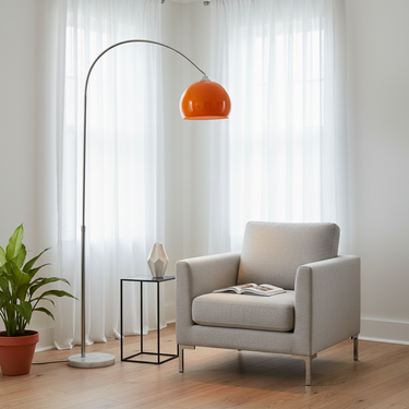 The Contemporary Arc Floor Lamp is the perfect blend of modern aesthetics and practical functionality. Featuring a striking dome shade in vibrant orange and classic white, this lamp enhances any living area while providing ample illumination. Its unique arch design not only serves as a light source but also acts as a stunning decor element, making it an ideal choice for both living rooms and bedrooms.