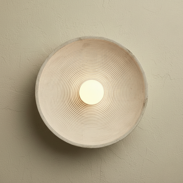The Enso Wall Sconce embodies a moment of serene calm, reminiscent of a stone creating ripples in still water. Its unique dish-like design features fine concentric rings that evoke a meditative rhythm, making it a captivating addition to any space. Crafted from a tactile paste-resin, this sconce elevates a simple light source into a stunning piece of textural art.
