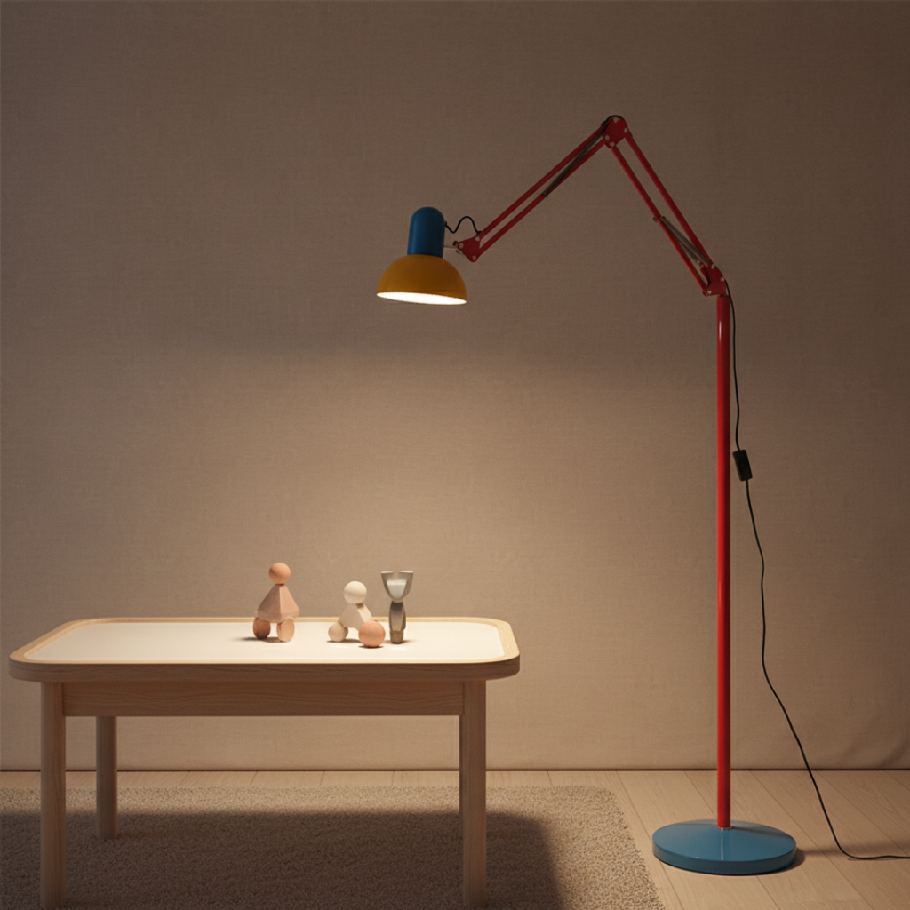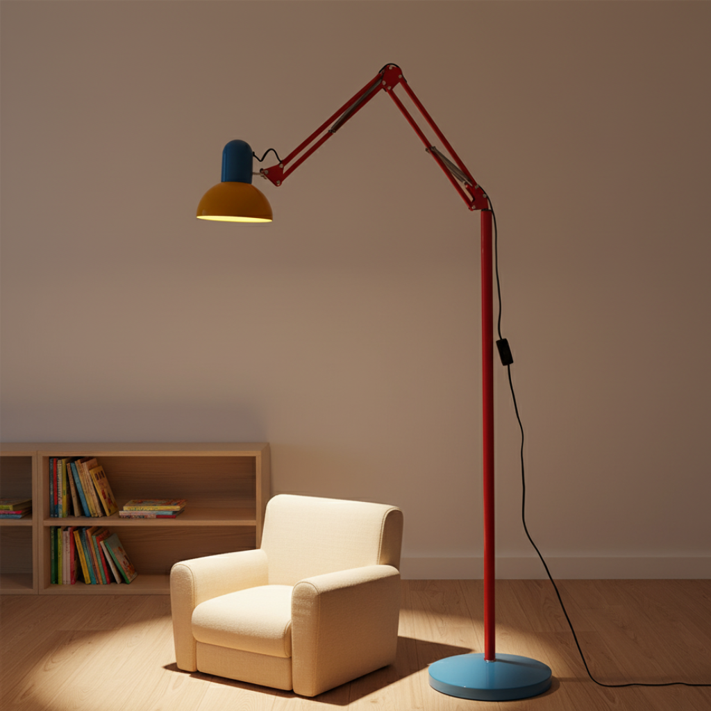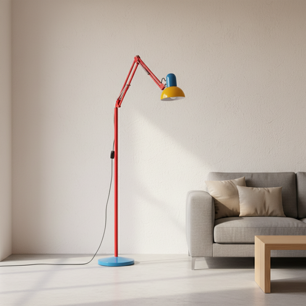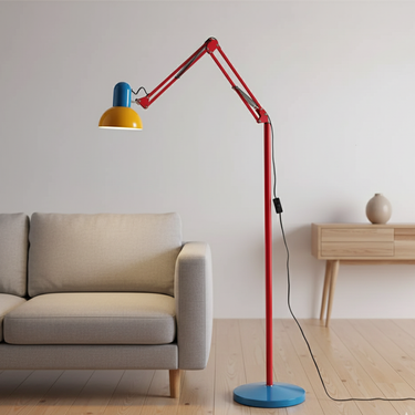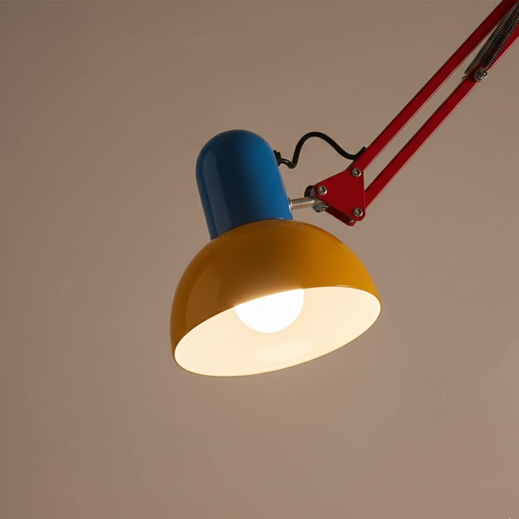 - Vivid Color Combination: Blue base, red arm, and yellow shade create a striking visual impact.