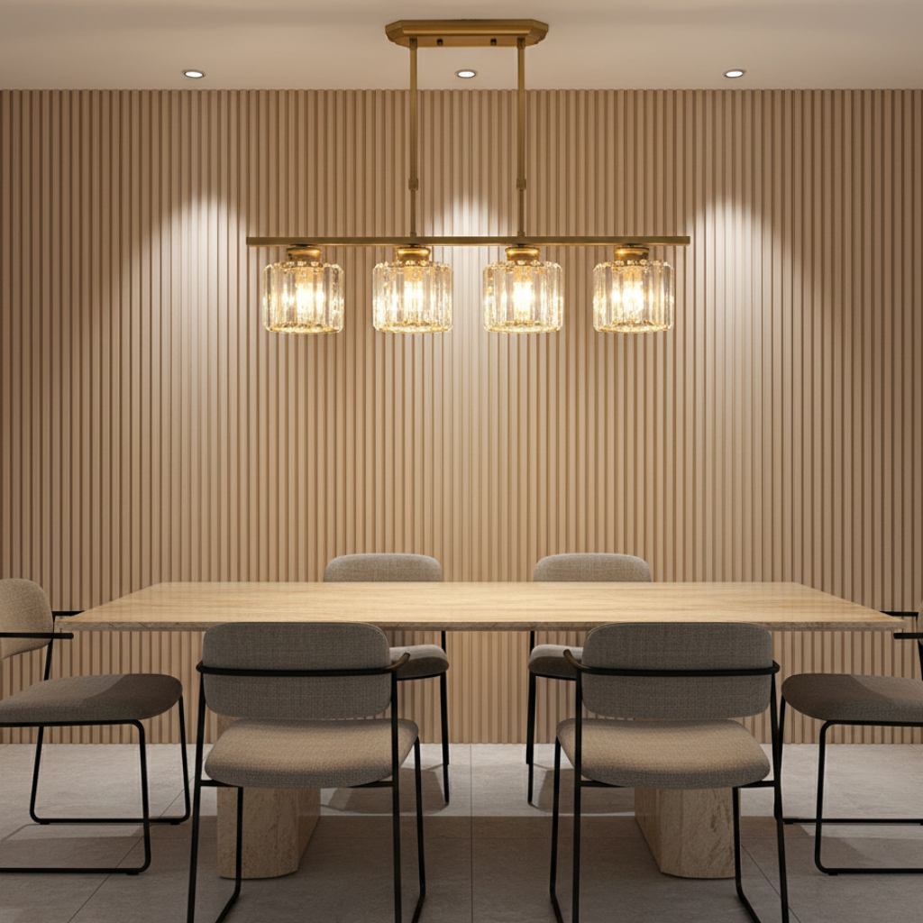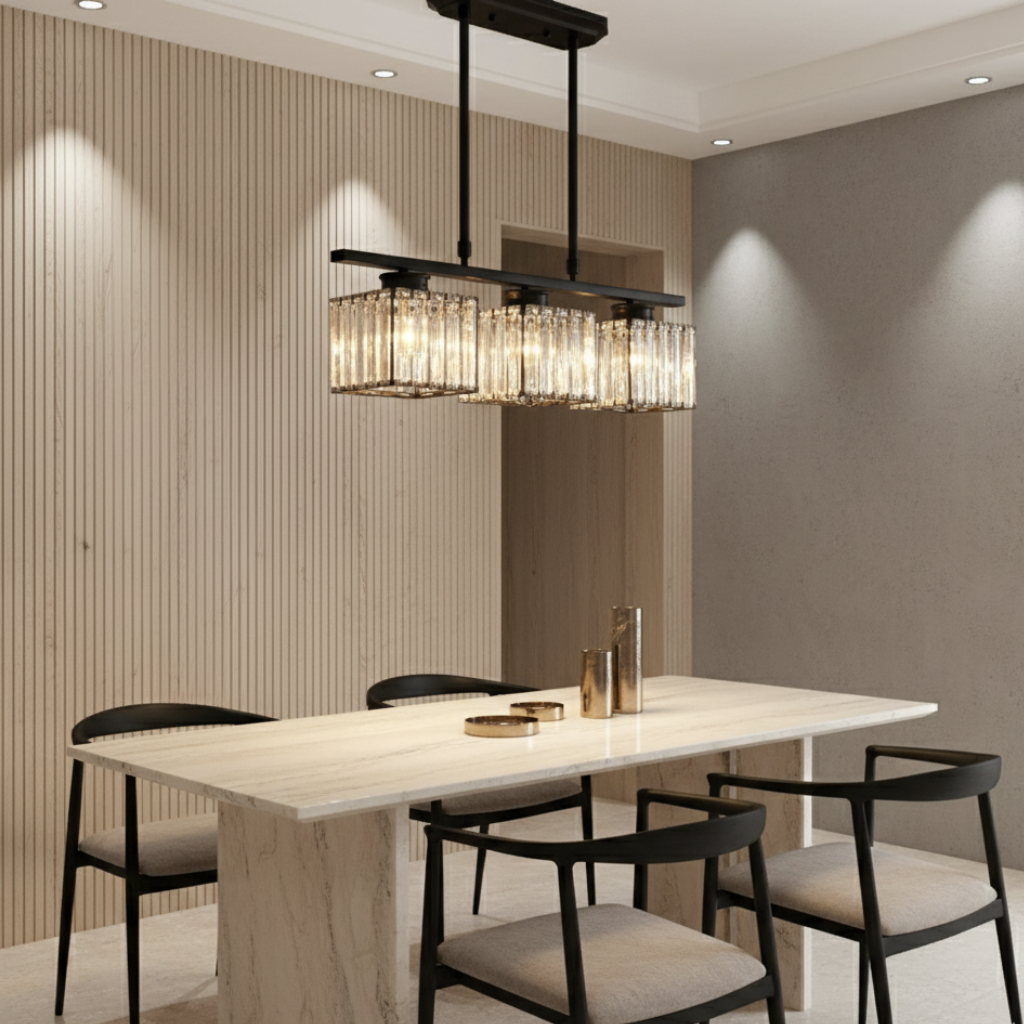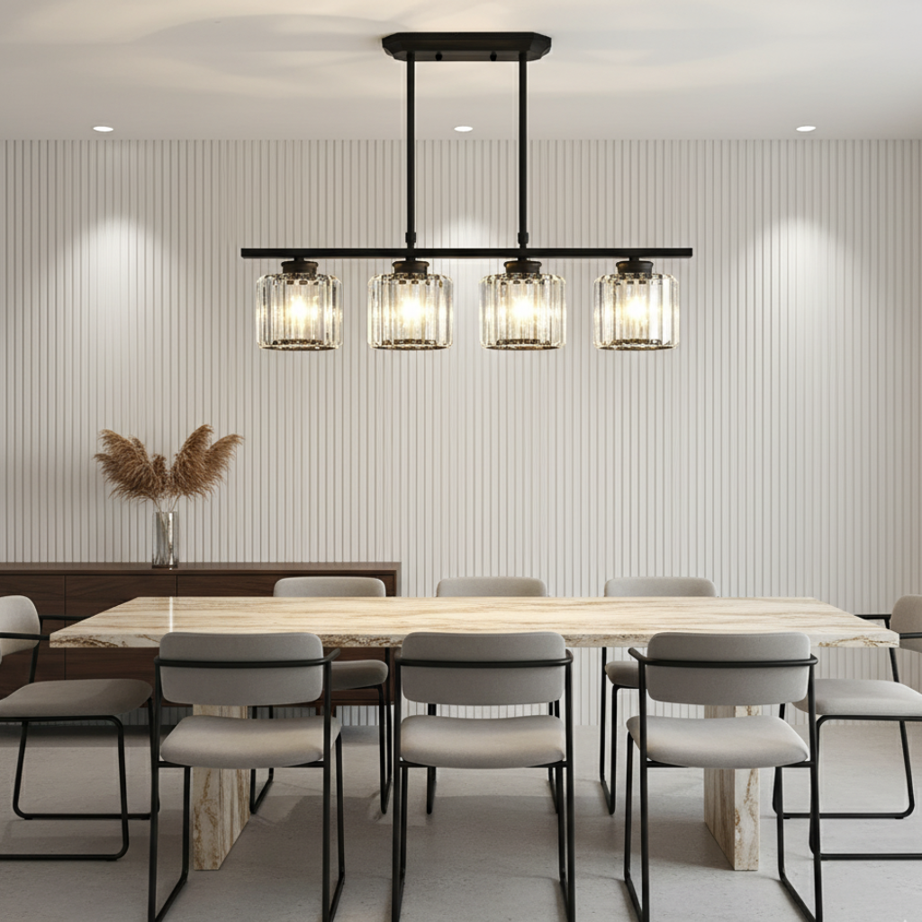 - Elegant Linear Composition: The lights are arranged in a clean, linear formation, making it a perfect architectural centerpiece for any dining table or kitchen island.