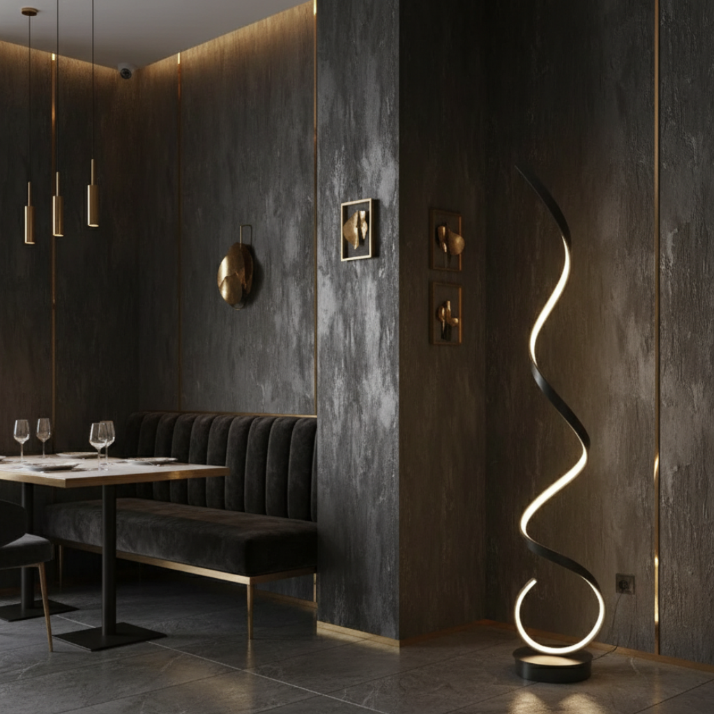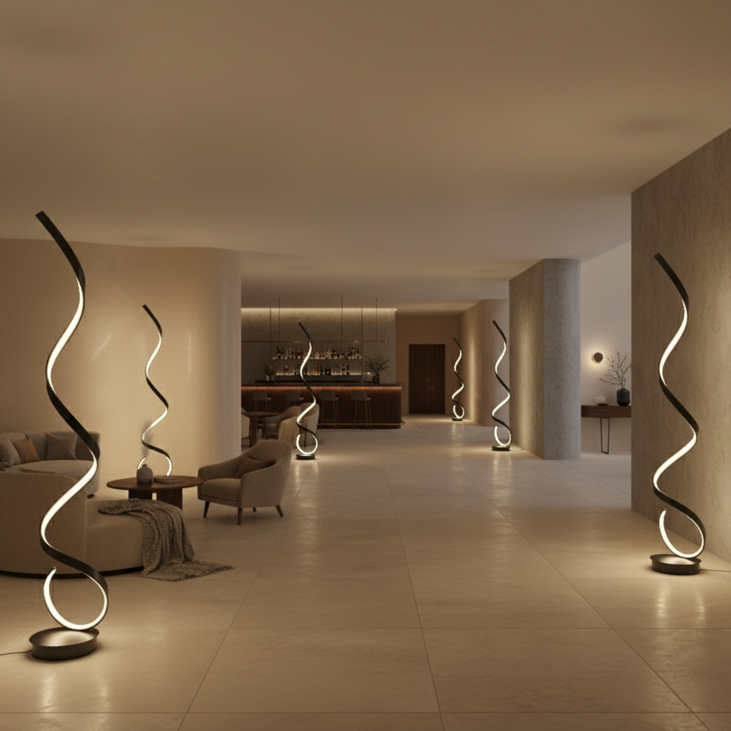 Enhance your living space with the Spira Floor Lamp, designed to blend energy efficiency with contemporary style. Its unique spiral shape and warm white dimmable LED lighting create a cozy atmosphere, making it an ideal addition to any modern home or office.