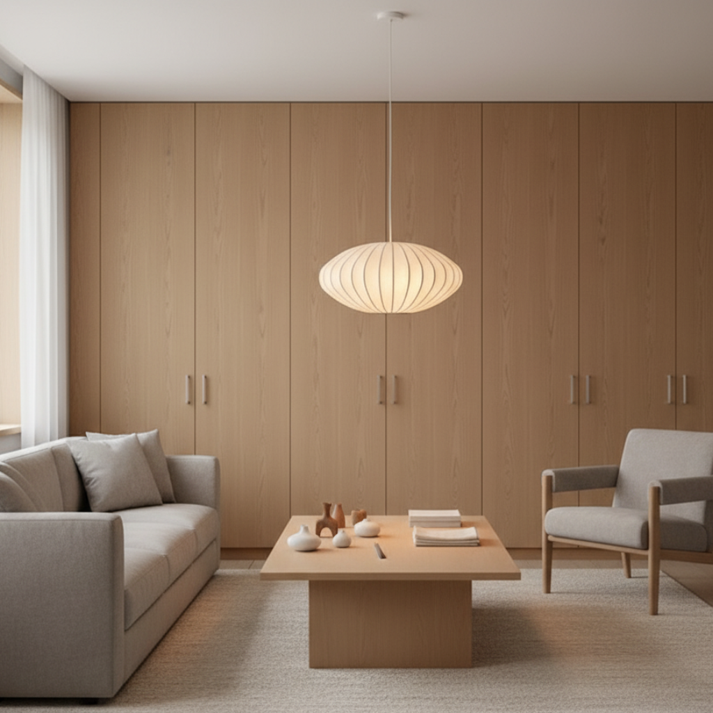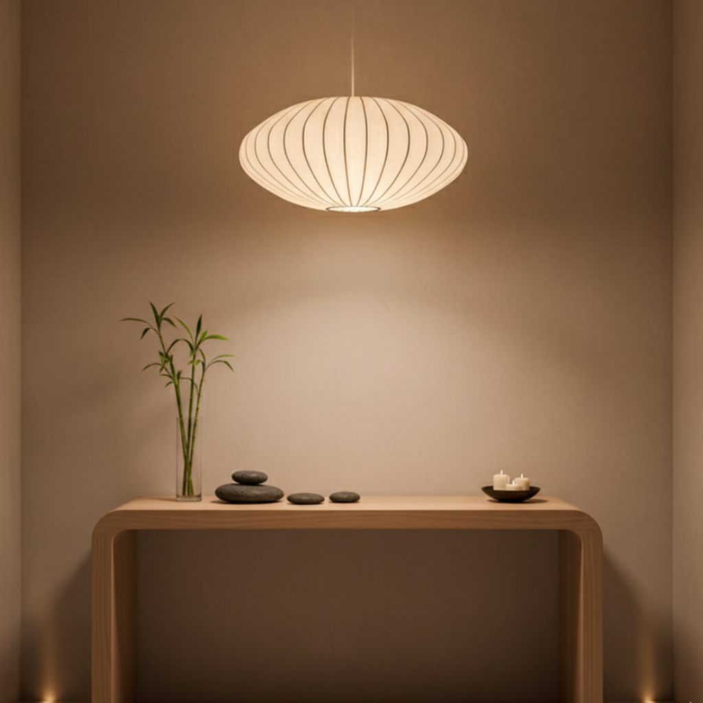 Transform your living area with the exquisite Japandi Silk Chandelier, a perfect fusion of classic elegance and modern minimalism. This pendant light not only enhances your decor but also creates a tranquil ambiance suitable for any interior style.