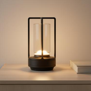 This portable LED candle lantern combines the charm of a candle with modern design. Encased in a solid glass cylinder and protected by a sleek metal cage, it offers a warm glow reminiscent of a flickering flame, perfect for any setting.