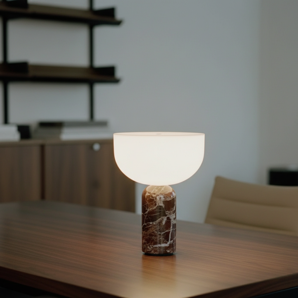 - Solid Marble Foundation: Carved from a single piece of natural marble, its unique veining makes each lamp a one-of-a-kind statement.