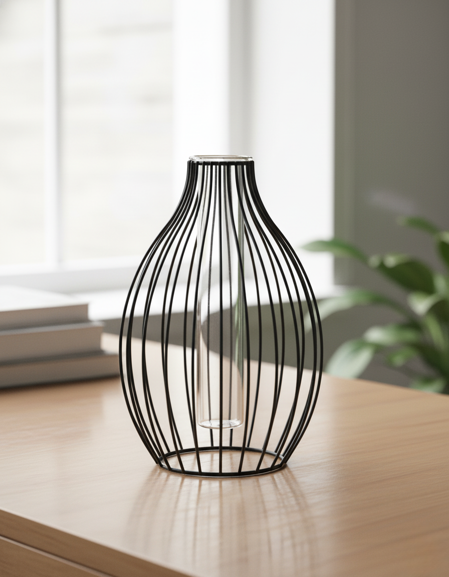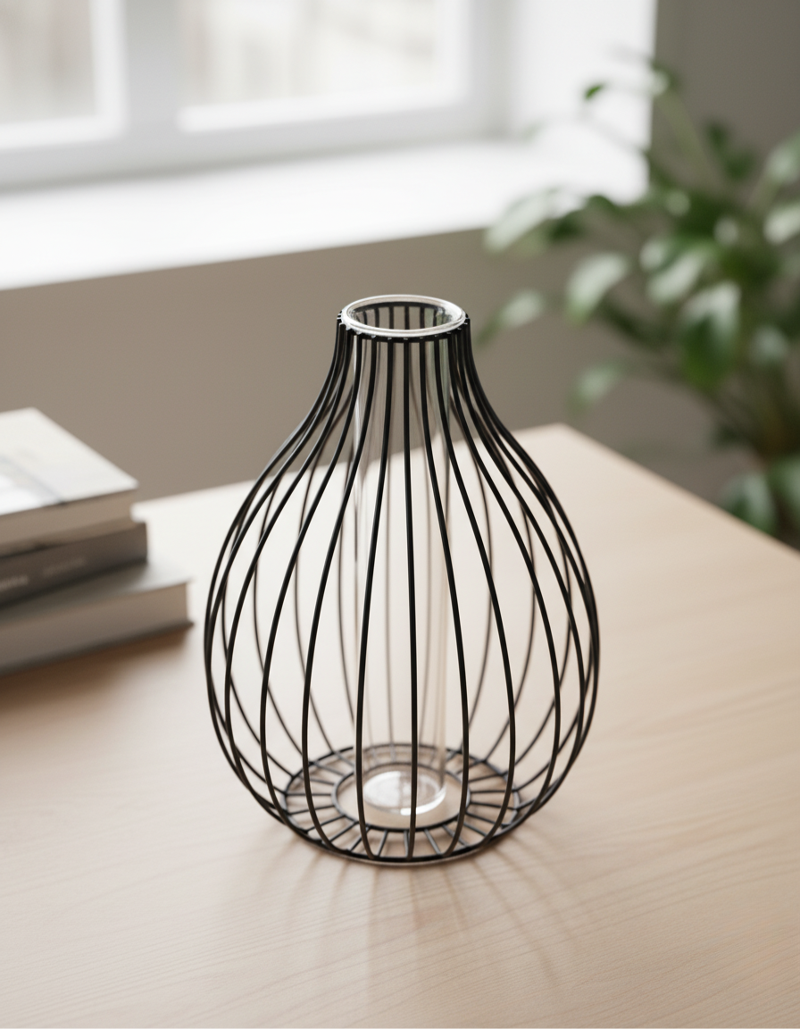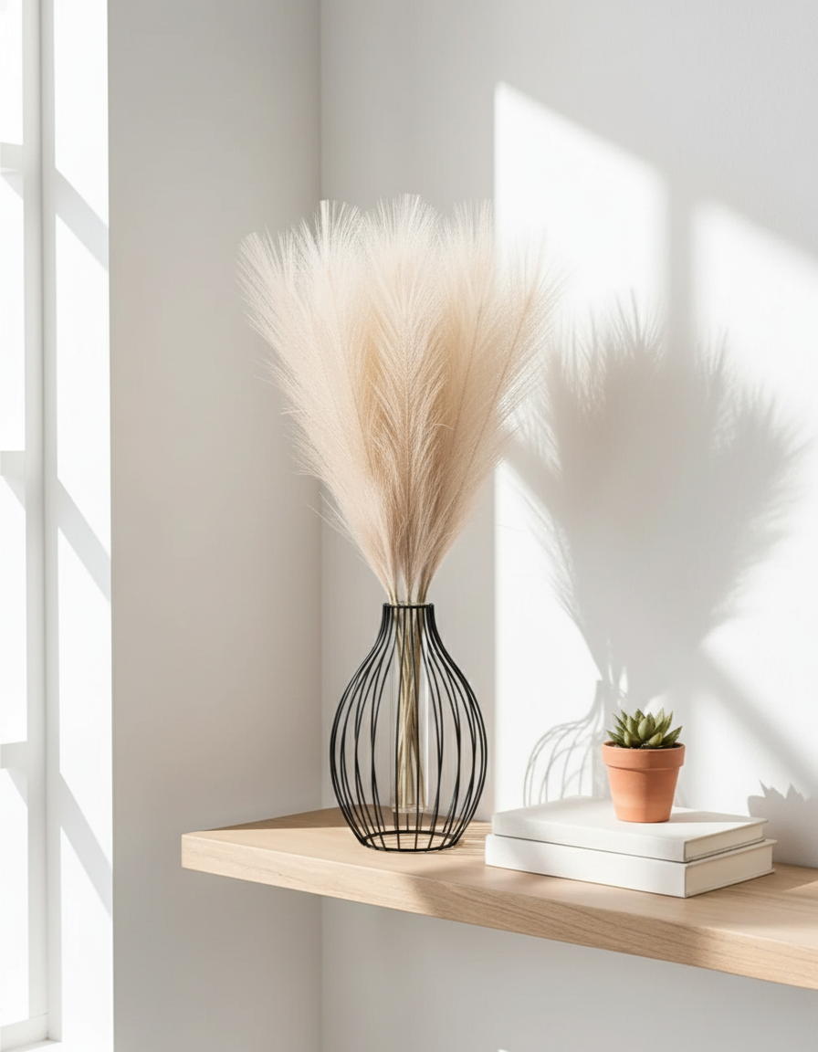 The Nordic Aura Vase is a stunning blend of modern artistry and timeless elegance. Crafted from durable iron with a deep matte black finish, this sculptural piece serves as both a decorative accent and a functional vessel. Its unique design makes it perfect as a standalone centerpiece or when styled with faux pampas grass, adding a touch of sophistication to any space, from minimalist to contemporary.