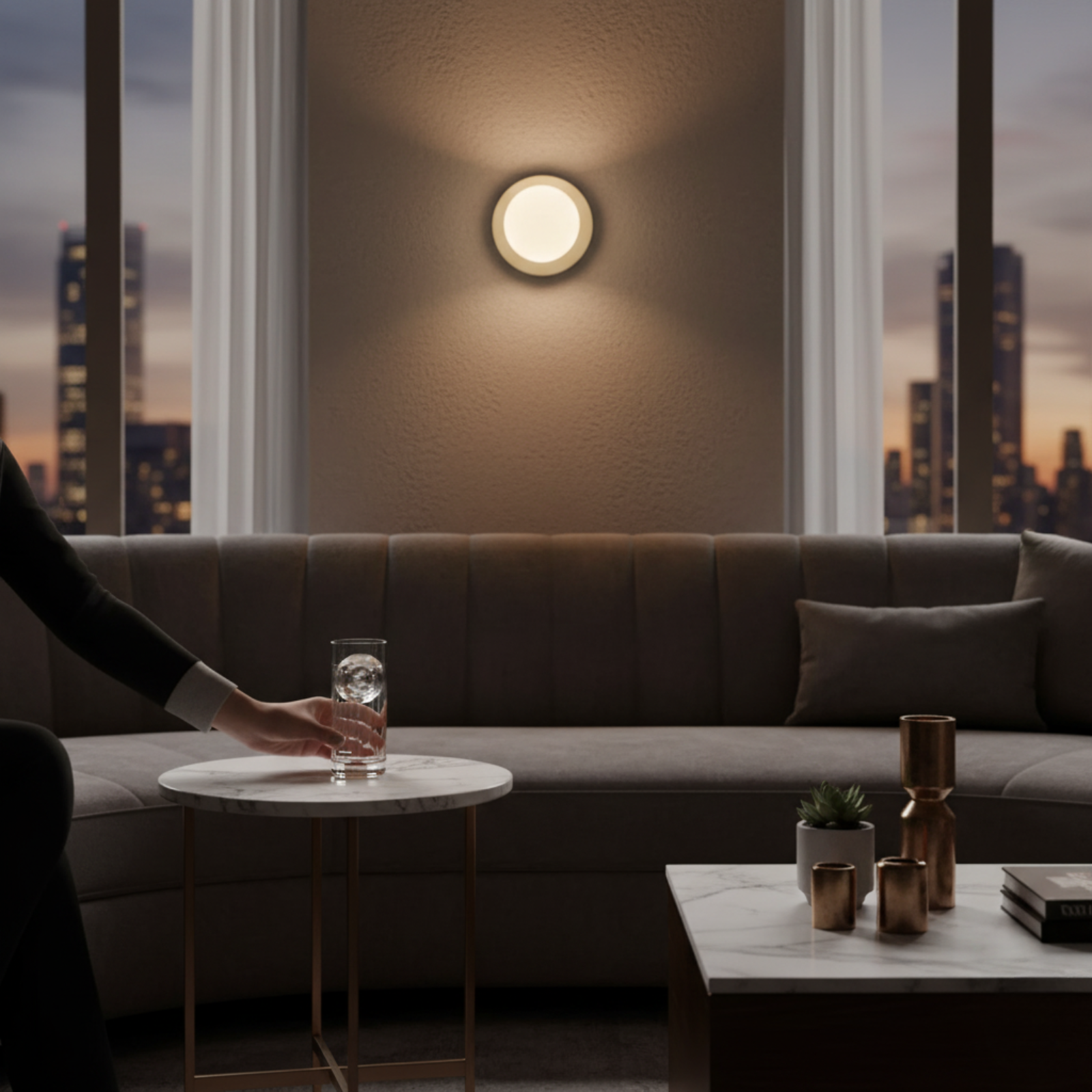- Playful Point of Interest: The glowing orb and colored backplate create a chic, graphic accent that enhances any surface.