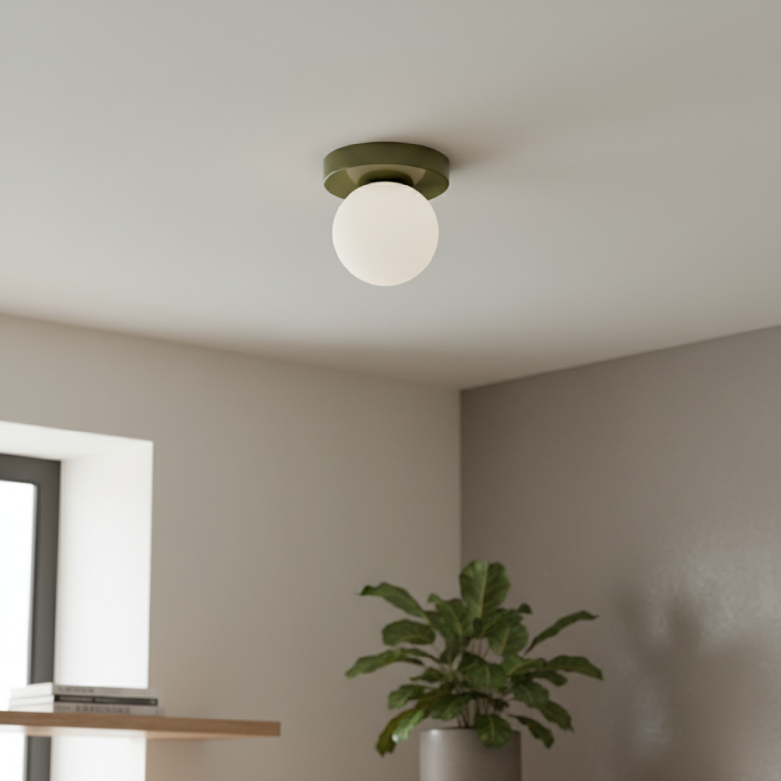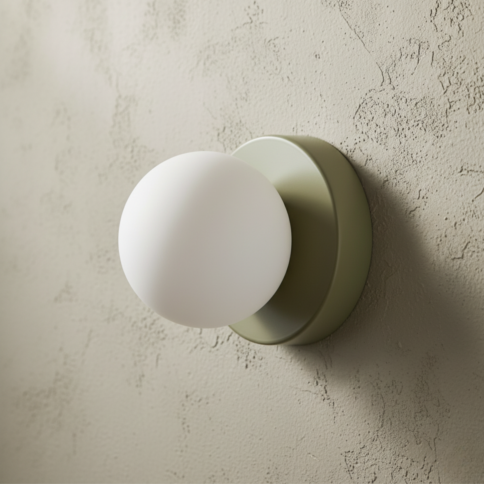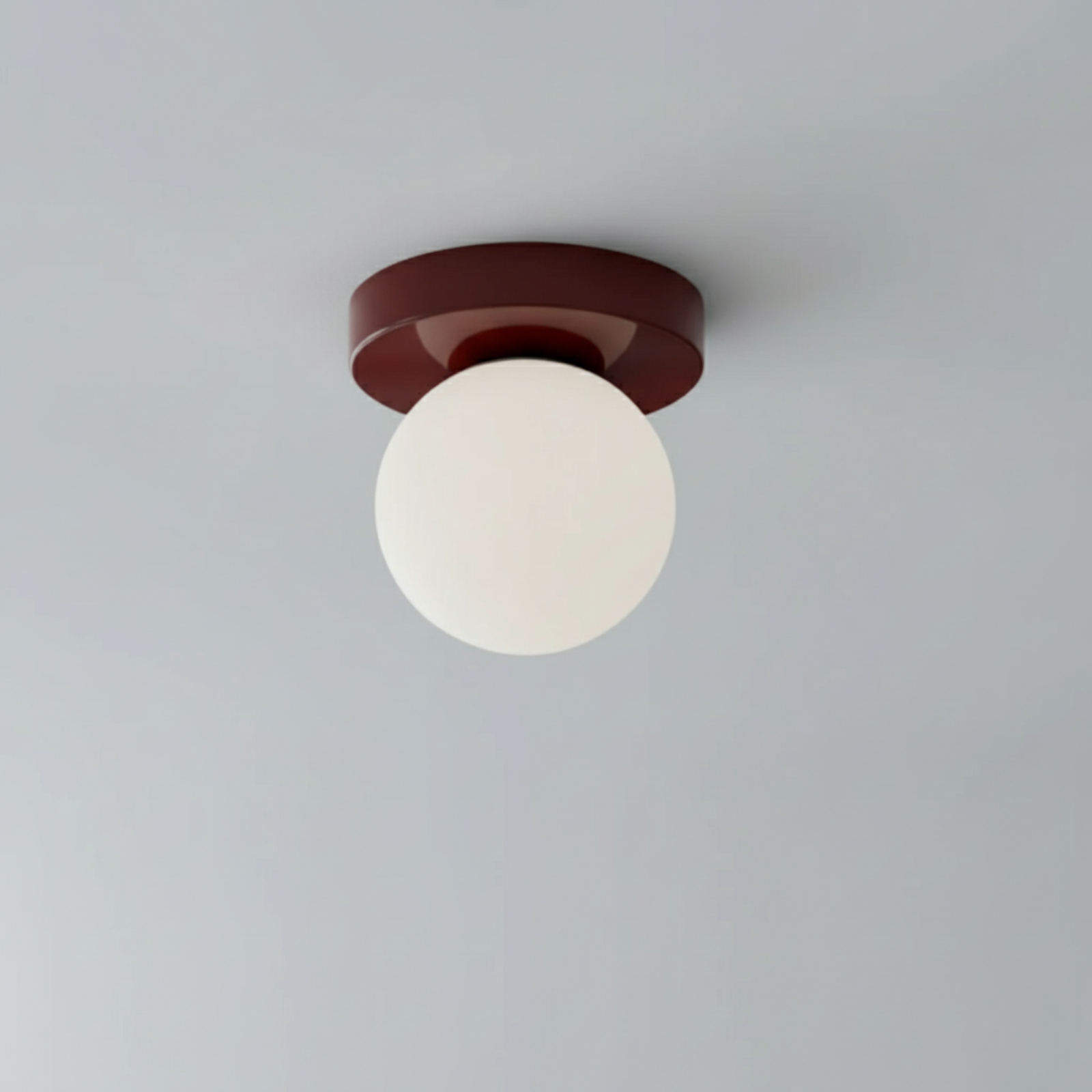 This versatile fixture adds a touch of color and light, making a minimalist statement with a playful twist. Featuring a frosted glass globe set against a smooth, colored iron disc, this lighting element exudes both charm and sculptural elegance. Perfectly designed for modern living, it infuses any wall or ceiling with a pop of Nordic personality.