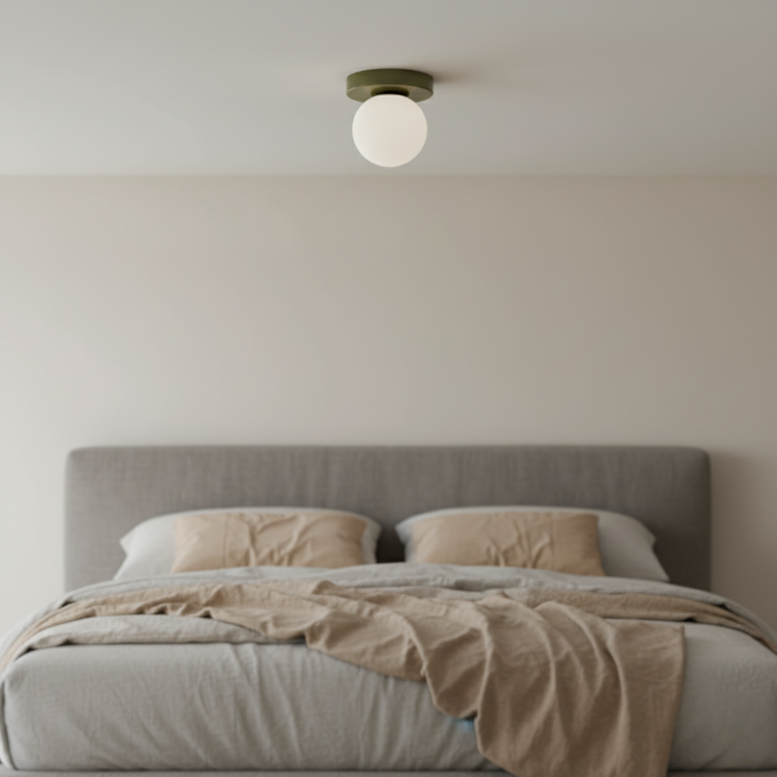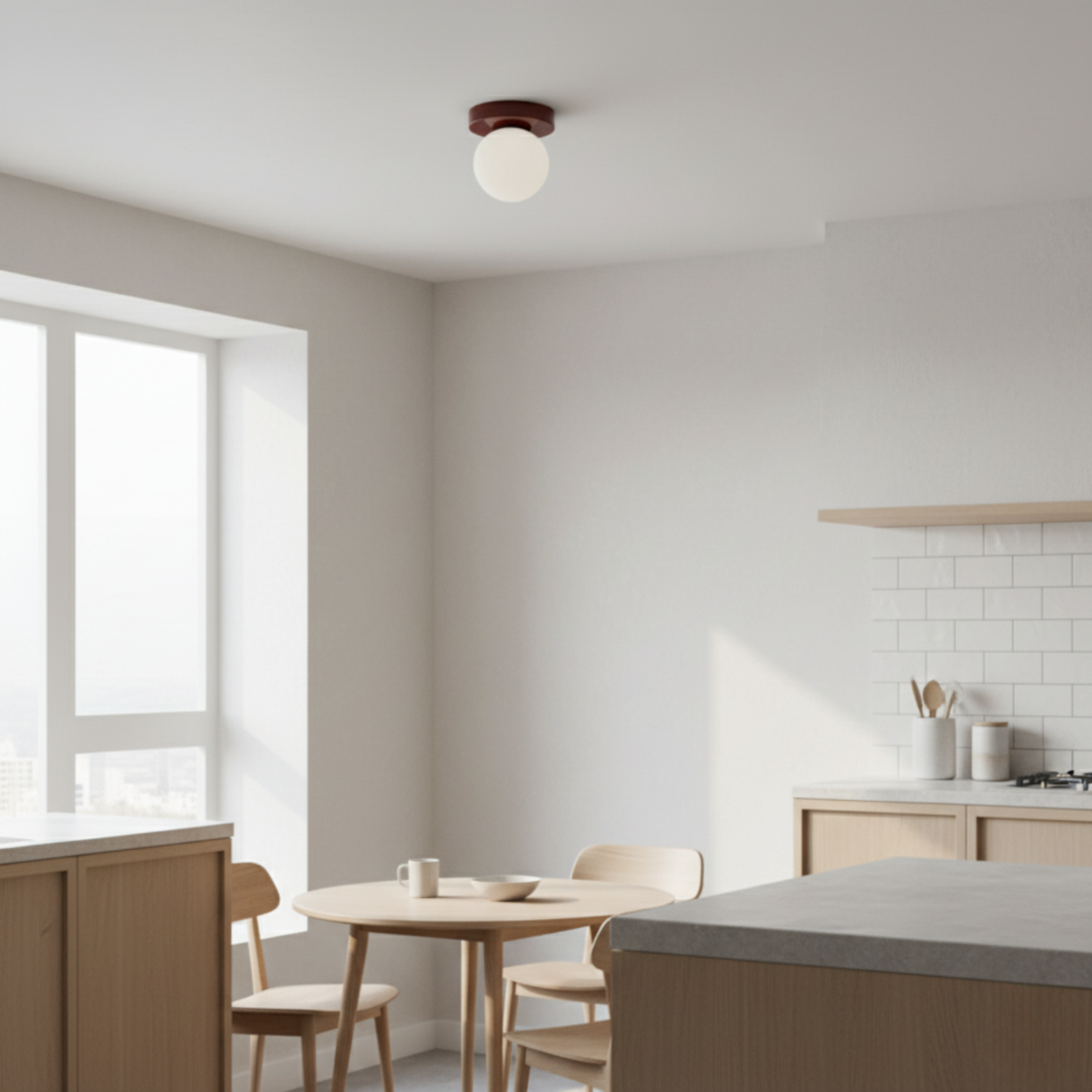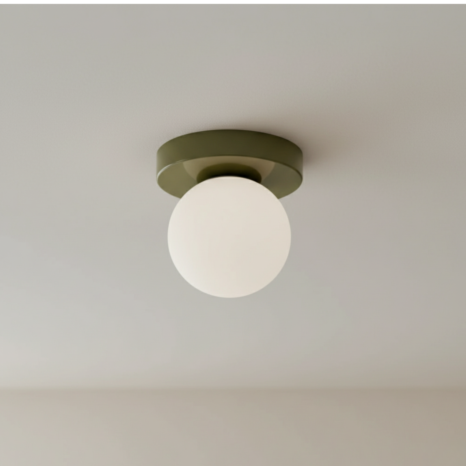 This versatile fixture adds a touch of color and light, making a minimalist statement with a playful twist. Featuring a frosted glass globe set against a smooth, colored iron disc, this lighting element exudes both charm and sculptural elegance. Perfectly designed for modern living, it infuses any wall or ceiling with a pop of Nordic personality.