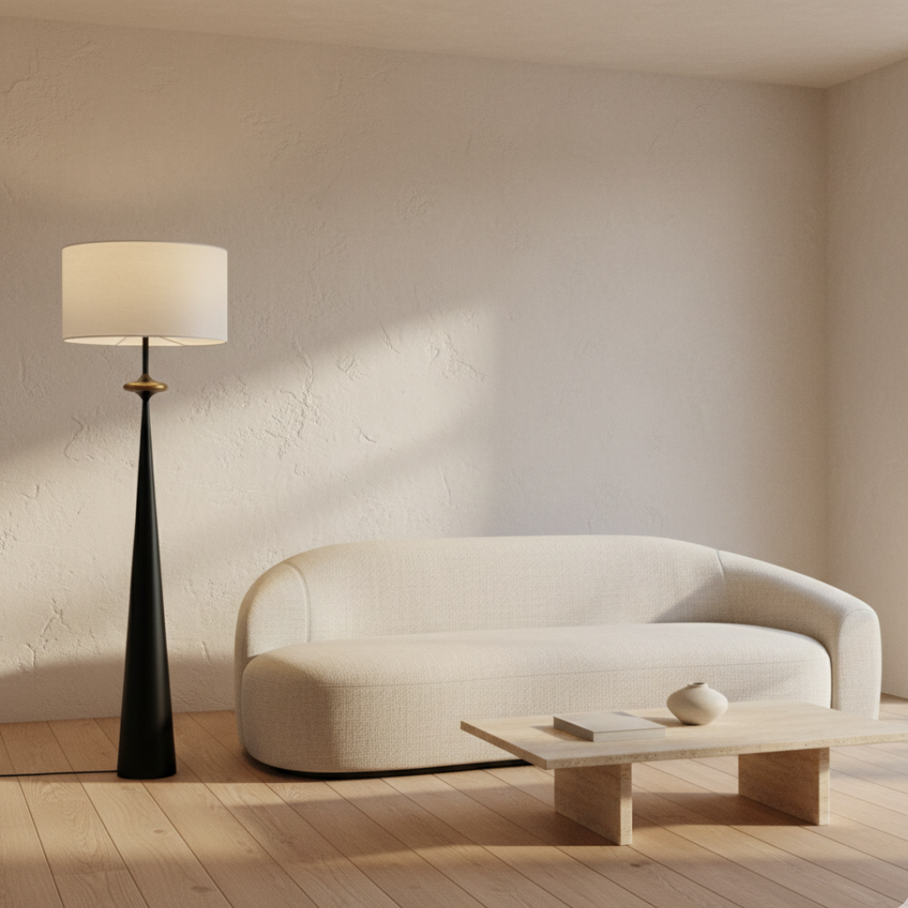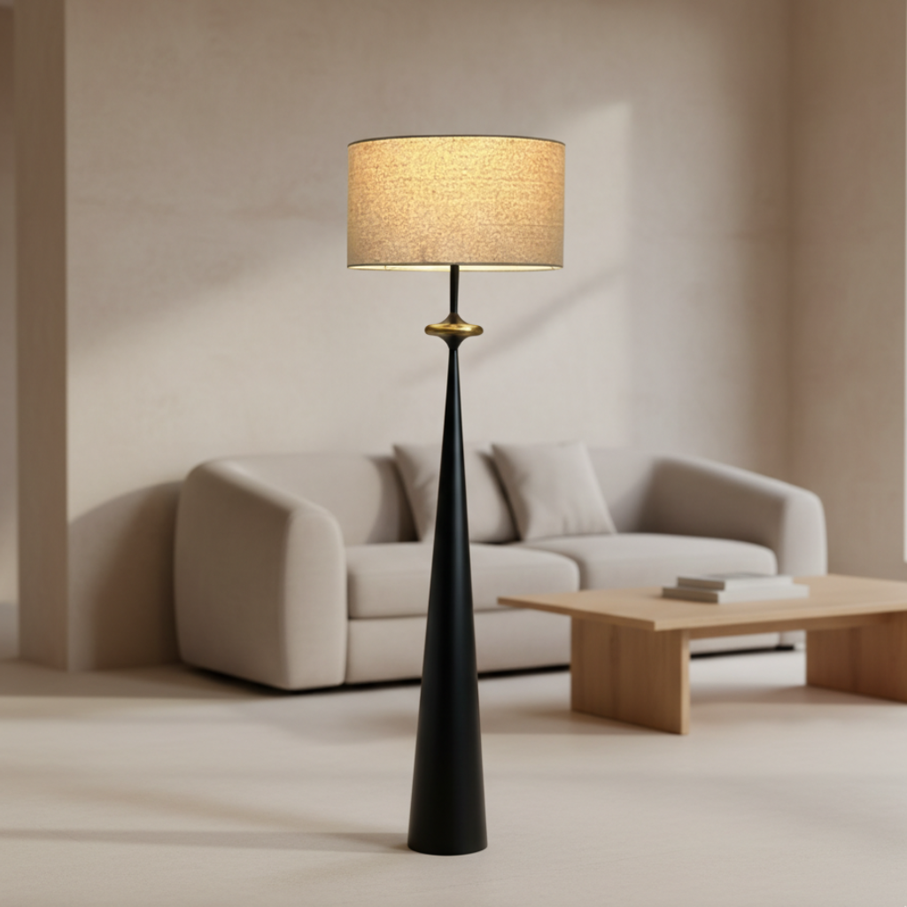 The Putney Floor Lamp is a stunning tribute to classic design, featuring a unique silhouette composed of three stacked shapes: a cylindrical top, a disc middle, and a slender cone base. This lamp not only serves as a source of light but also as a striking piece of art that enhances the aesthetic of any modern living area. Its vintage-style aluminum finish adds a touch of sophistication, making it a perfect fit for various interior styles.