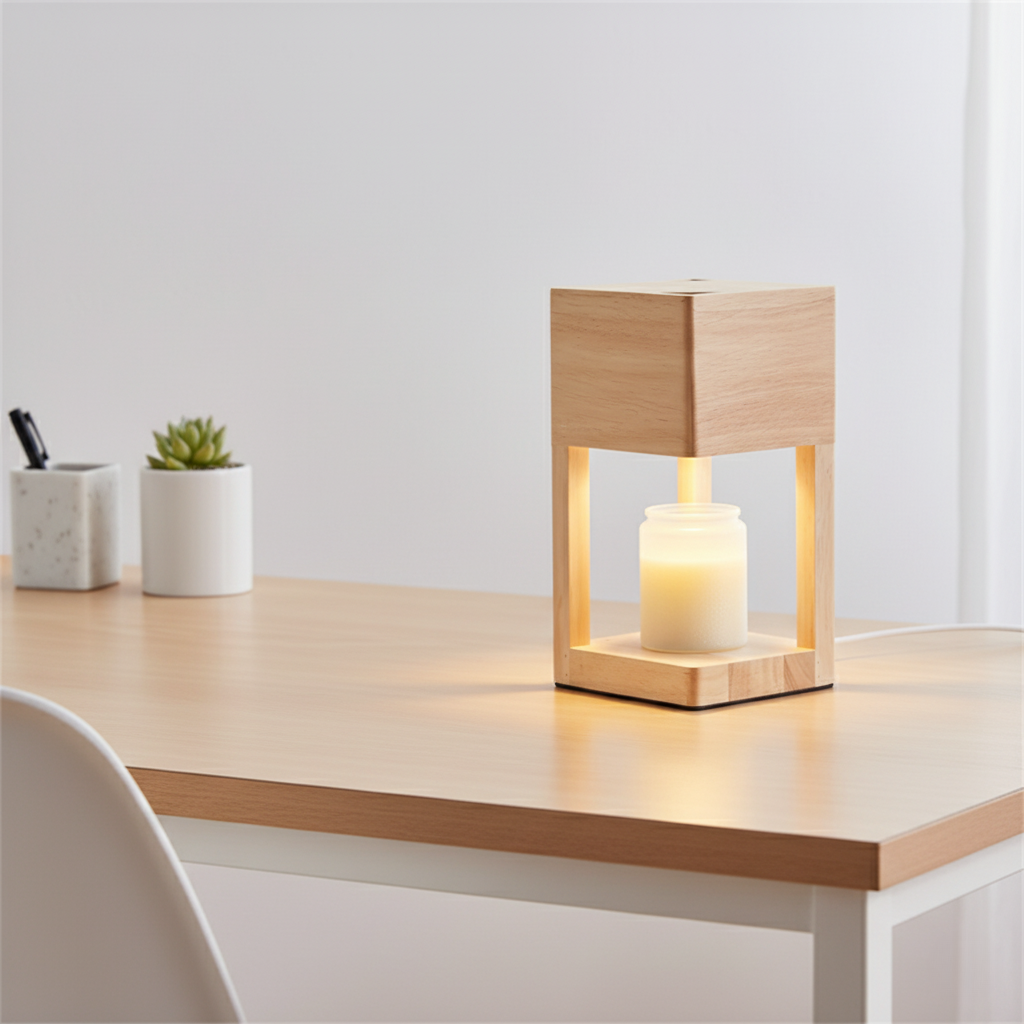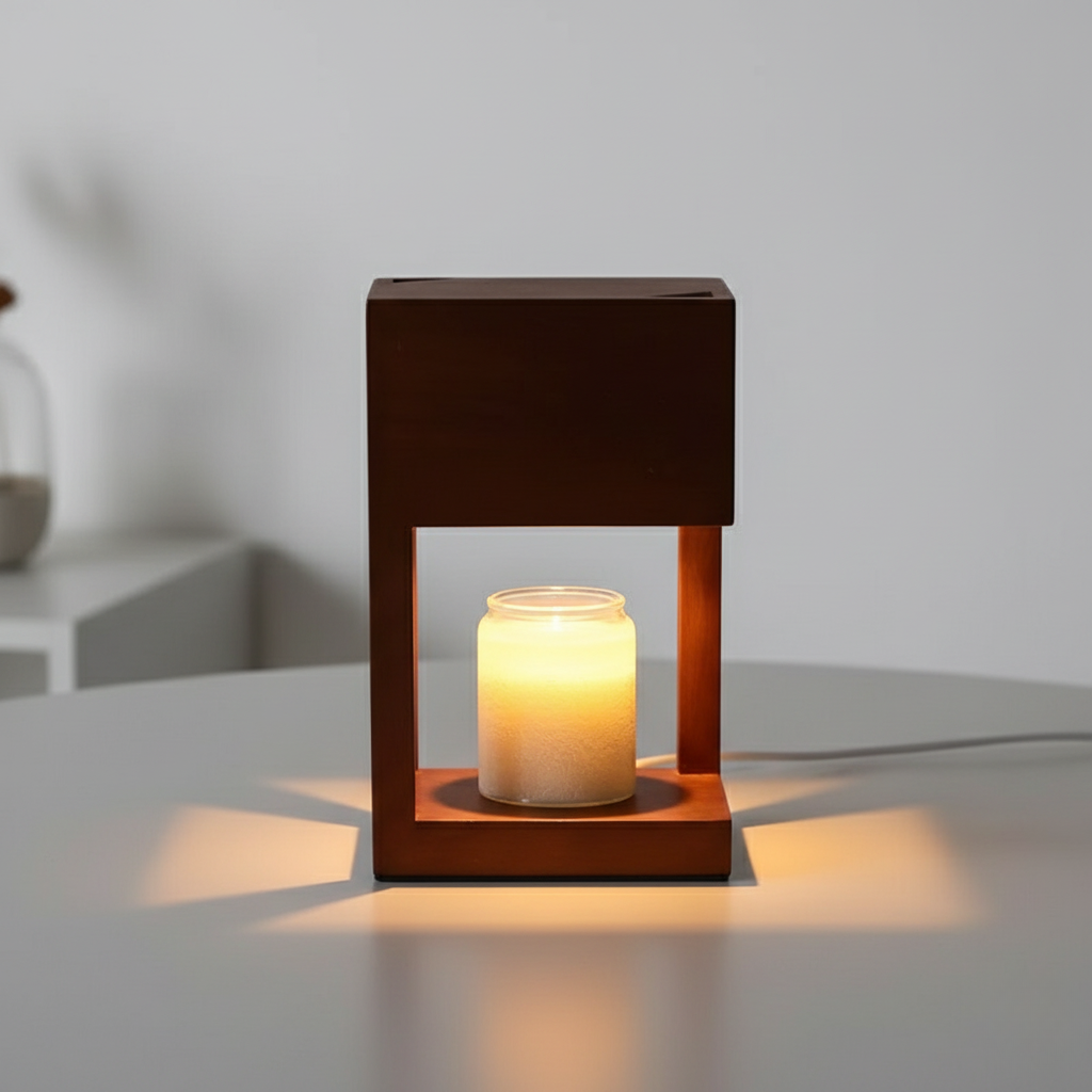 Scandinavian Wooden Candle Warmer Lamp - Dual-Purpose Ambient Light