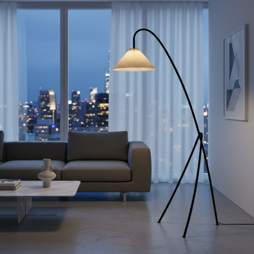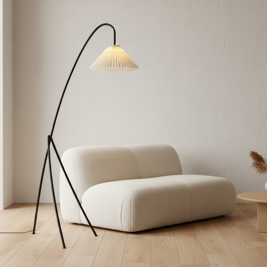Tove Pleated Tripod Floor Lamp - Modern Standing Floor Lamp for Cozy Living Room Spaces